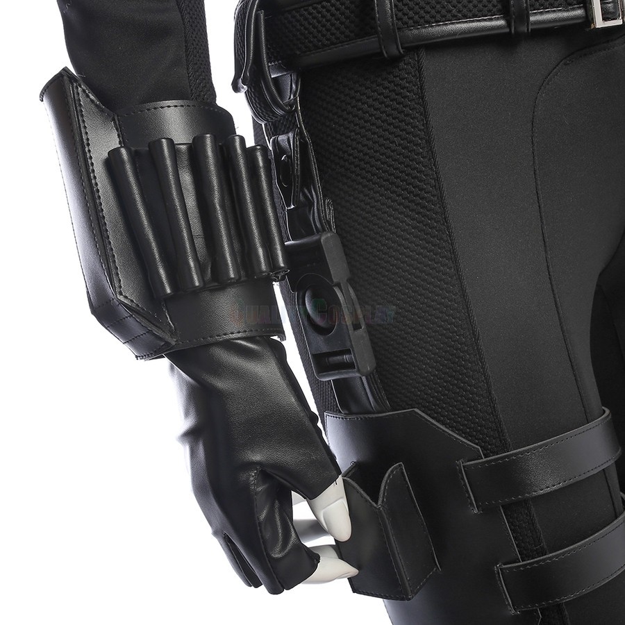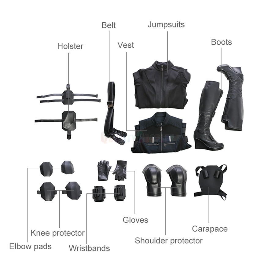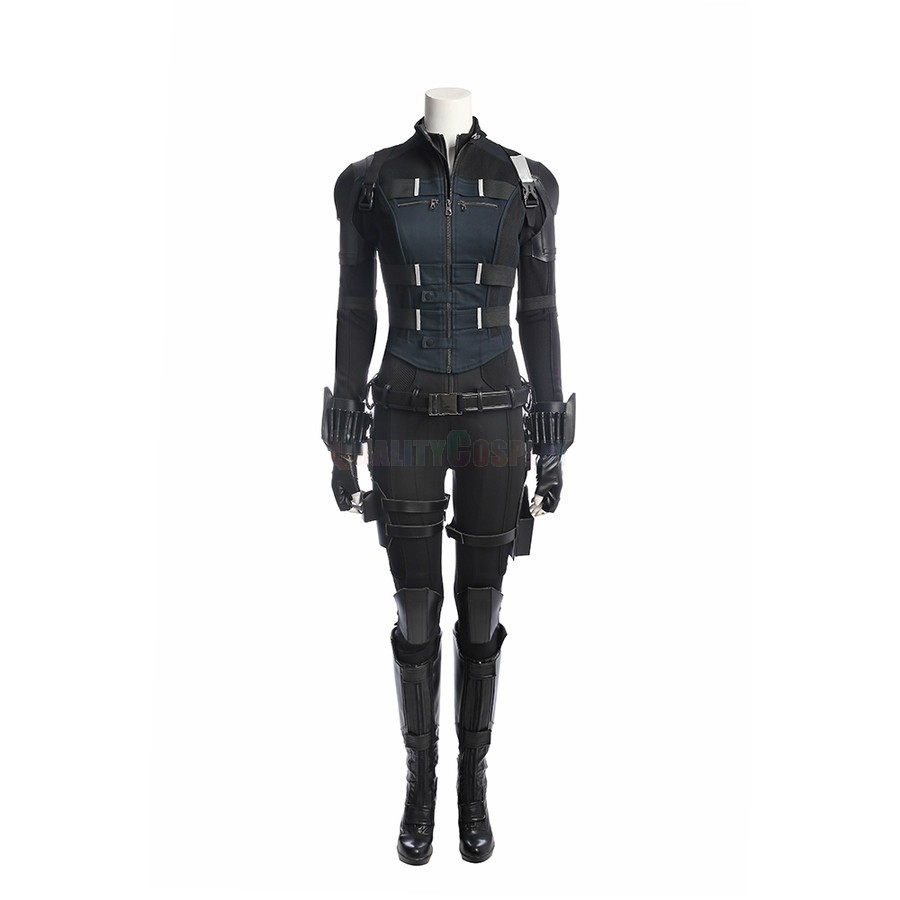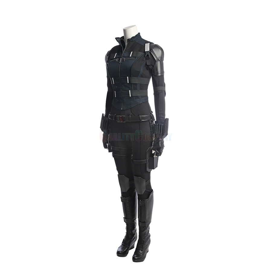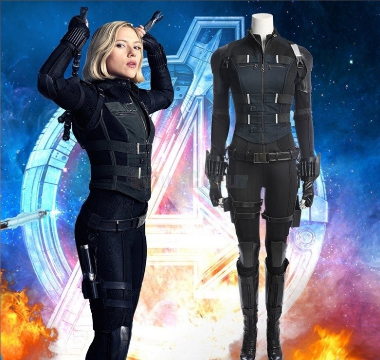 DetailsAvengers 3 Infinity War Black Widow Cosplay Costume Natasha Romanoff Costume Sources:Avengers: Infinity War / Avengers 3 Characters:Black Widow / Natasha Romanoff Material:Pu, Elastic leather, Knit, Cotton, Composite leather, Fur, Satin Package Includes:Vest, Jumpsuit, Gloves, Cuffs, Shoulder pad, Elbow pads, Belt, Holster, Kneepads