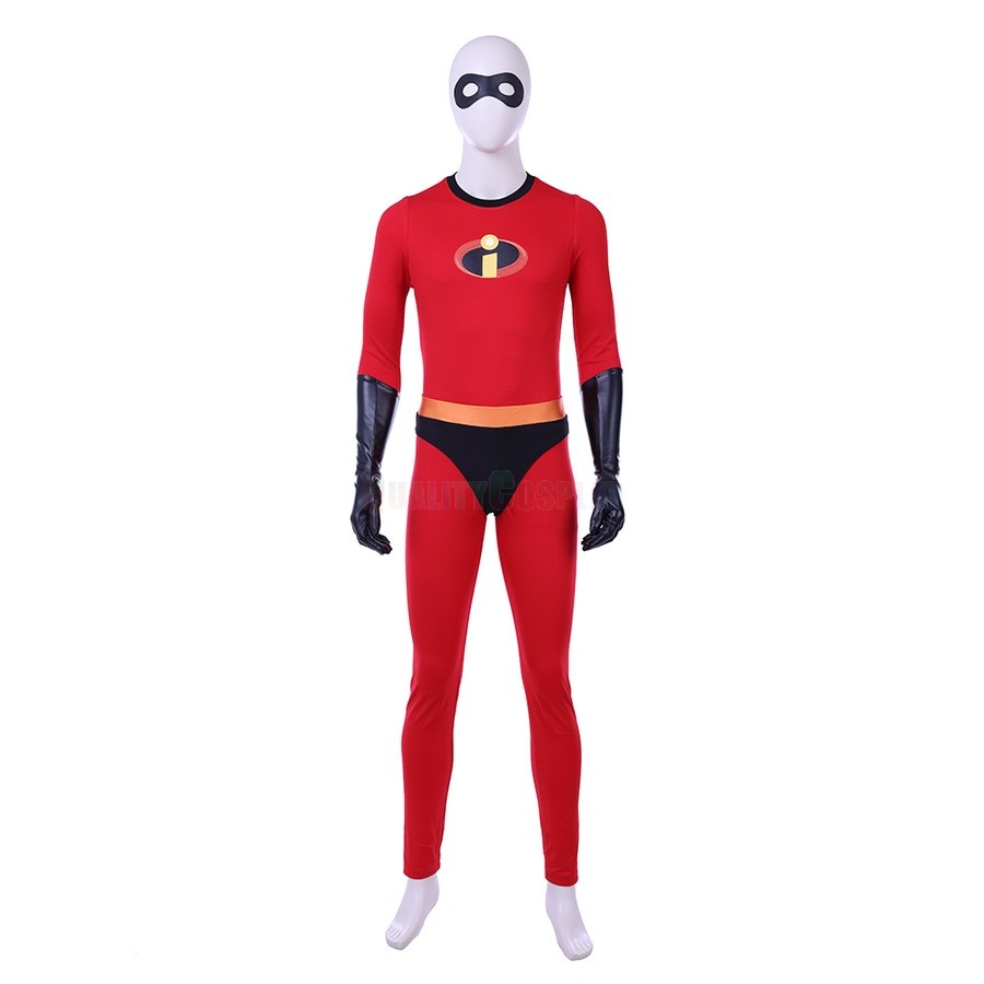 DetailsThe Incredibles 2 Bob Parr Cosplay Costume Mr Incredible Jumpsuit Sources:The Incredibles 2 Characters:Bob Parr / Mr Incredible Material:Spandex, Faux leather Package Includes: Jumpsuits, Briefs, Belt, Gloves, Eyemask